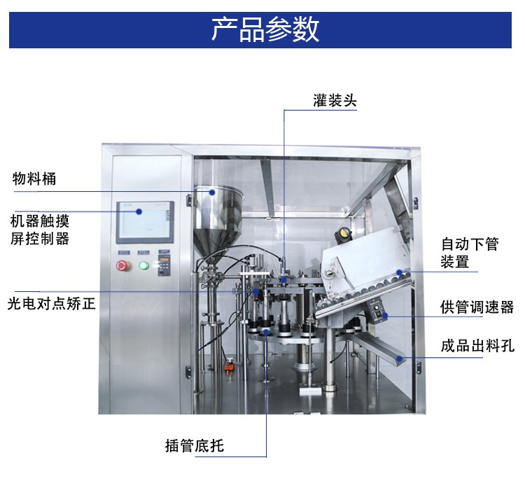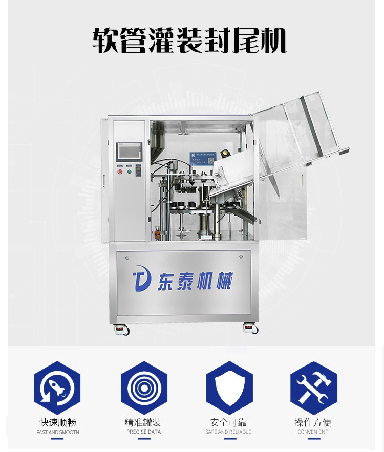 A、RGNF-30適用于醫(yī)藥、食品、化妝品、日用化工用品等行業(yè)的塑管、鋁塑復(fù)合管灌裝封尾需要?蓪⒏鞣N 糊狀、膏狀、粘度流體等物料順利準(zhǔn)確地注入軟管中,并完成管內(nèi)熱風(fēng)加熱、封尾和打批號(hào)、生產(chǎn)日期等。