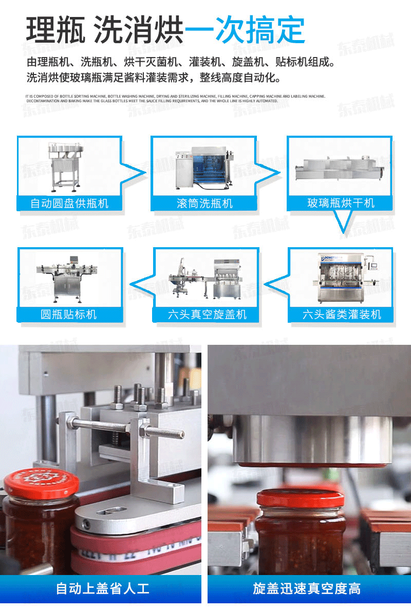 為了能夠更好的服務(wù)社會我們東泰辣椒醬灌裝機踏上了多樣化生產(chǎn)道路,并且現(xiàn)在已經(jīng)有了一定的顯著成績,原來的傳統(tǒng)設(shè)備由于功能有所局限,只能灌裝普通的醬料,而經(jīng)過我們改進后的全自動辣椒醬灌裝機能夠?qū)崿F(xiàn)對市場上絕大多數(shù)的醬料的灌裝,尤其是那些含顆粒的顆粒漿狀流體、半流體、膏體、漿狀類的物料灌裝,如辣椒醬、牛肉醬、牛肉大醬、豆瓣醬、芝麻醬、果醬、火鍋底料的等物料的灌裝,在市場中,辣椒醬灌裝機有眾多的機會來展現(xiàn)出自我的風采,不僅是因為再市場中的廣泛應用,還有這十分出眾的全自動化的一鍵式的完成一系列的工作流程,更能夠凸顯出市場對于它自身的需求。