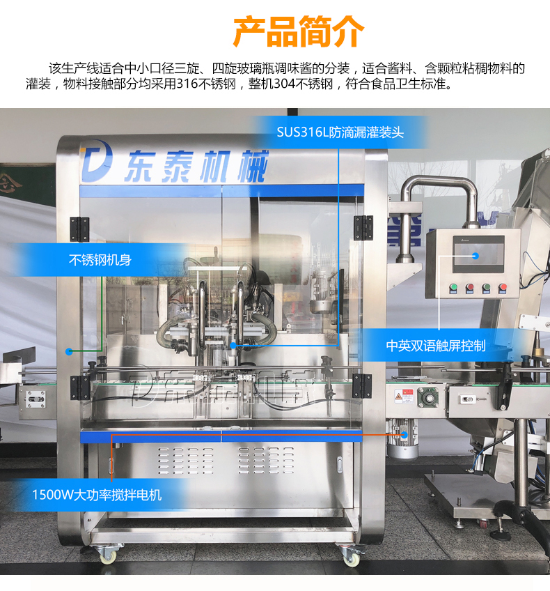 東泰機(jī)械通過十多年的努力和發(fā)展,現(xiàn)已成為集科研、設(shè)計(jì)制造、成套供應(yīng)、技術(shù)咨詢服務(wù)、工程總承包為一體的高科技型企業(yè)。如今專業(yè)的東泰技術(shù)團(tuán)隊(duì)根據(jù)醬料市場(chǎng)研發(fā)推出的牛肉醬定量灌裝機(jī)設(shè)備得到市場(chǎng)的認(rèn)可和用戶的青睞。同時(shí)這款自動(dòng)化、智能化、效率化、功能化的醬料灌裝機(jī)械設(shè)備帶領(lǐng)著醬料市場(chǎng)進(jìn)入規(guī);纳a(chǎn)領(lǐng)域中,為相應(yīng)企業(yè)提供方便、快捷、省時(shí)省力的現(xiàn)代化快節(jié)奏的發(fā)展。如果您有需求,歡迎您到東泰機(jī)械實(shí)地考察選購!