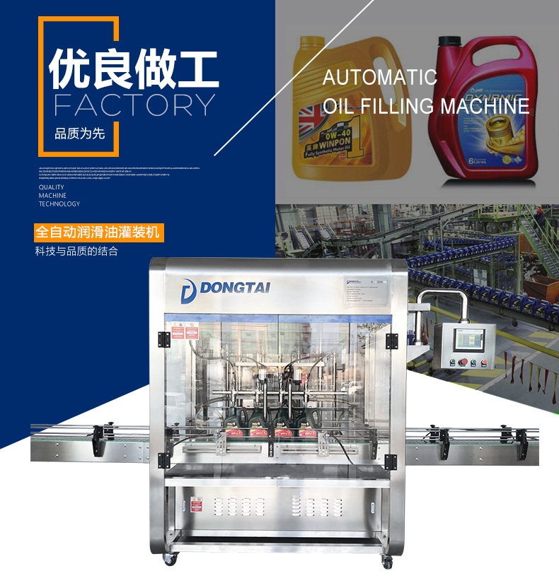 該潤滑油灌裝機(jī)集機(jī)械、電子、氣動為一體。該生產(chǎn)線由理瓶機(jī)、直線式灌裝機(jī)、旋蓋機(jī)、貼標(biāo)機(jī)、噴碼機(jī)等組成。具有自動化程度高、成品率高、適用性廣、穩(wěn)定性好而受到廣大用戶青睞。該生產(chǎn)線能自動完成理瓶、灌裝、旋蓋、貼標(biāo)、噴碼等功能。裝量精度高、使用使用壽命長、耐高溫、耐酸堿,填補(bǔ)了內(nèi)空白。適用于油類半流體等不同粘度物料的灌裝,充分體現(xiàn)了本公司在產(chǎn)品設(shè)計、制造上的優(yōu)勢。灌裝系統(tǒng)采用PLC微電腦、人機(jī)界面組合控制、操作簡單、維護(hù)方便。所有接觸物料部分的材料和裝潢材料全部采用優(yōu)質(zhì)不銹鋼制造,表面進(jìn)行了拋光處理,外形美觀、大方,不污染環(huán)境,符合GMP要求。